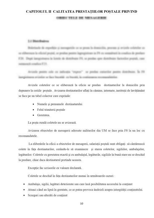 Am ales tema de studiu pentru lucrarea de atestat " CALITATEA PRESTAȚIILOR POȘTALE PRIVIND OBIECTELE DE MESAGERIE" deoarece această temă este una foarte importantă de dezbătut datorită faptului că acest serviciu este unul care a luat amploare in zilele noastre și mi se pare că în acest domeniu există o mare nevoie de aptitudini şi competențe.