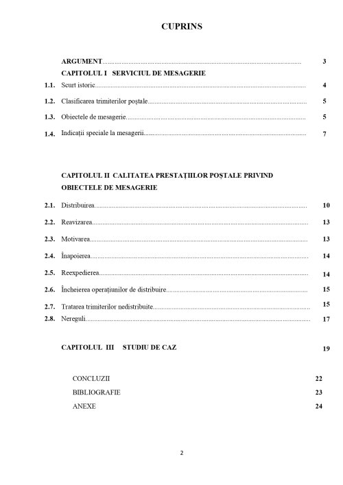 CAPITOLUL I SERVICIUL DE MESAGERIE