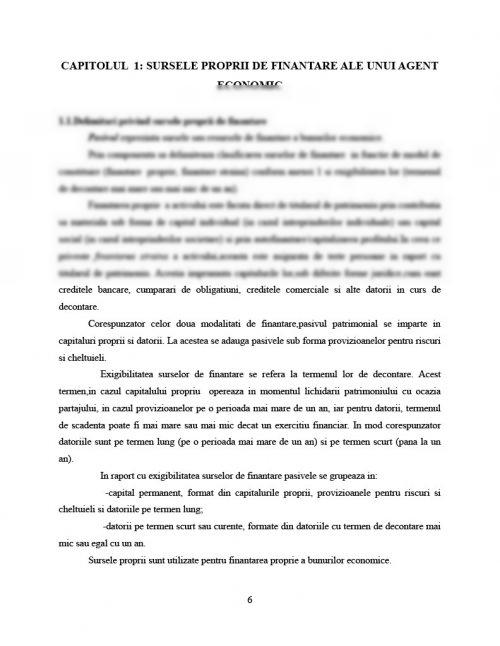 CAPITOLUL 1: SURSELE PROPRII DE FINANTARE ALE UNUI AGENT ECONOMIC .......... pagina 6