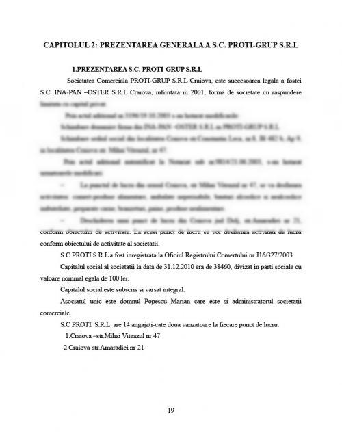 CAPITOLUL 2: PREZENTAREA GENERALA A S.C. PROTI-GRUP S.R.L .......... pagina 19