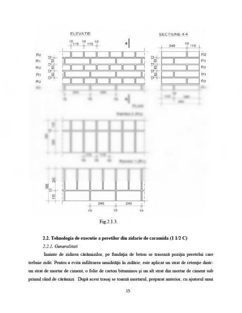 2.2. Tehnologia de executie a peretilor din zidarie de caramida (1 1/2 C) .......... pagina 15