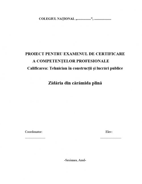 2.2.3. Reguli tehnologice la executarea zidului din caramida 1 ½ C .......... pagina 23