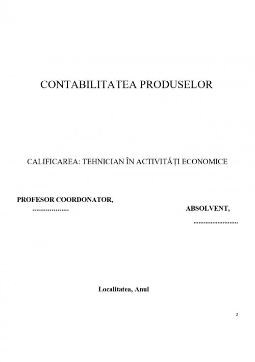 CAPITOLUL III: CONTABILITATEA PRODUSELOR (pagina 16)