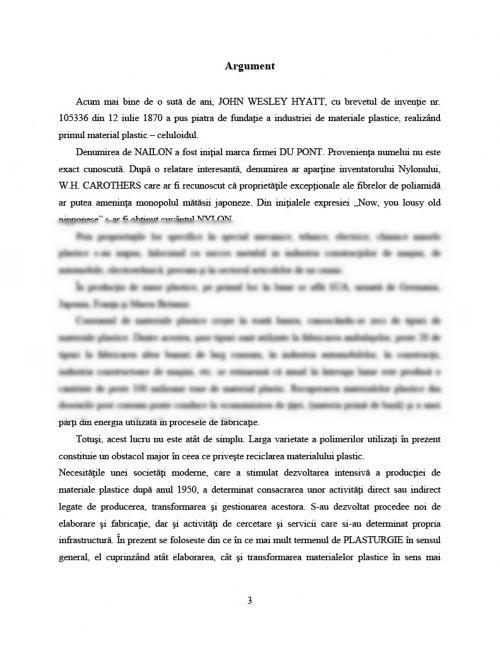 CAPITOLUL 3: Reciclarea si valorificarea deseurilor din mase plastice .......... pagina 11