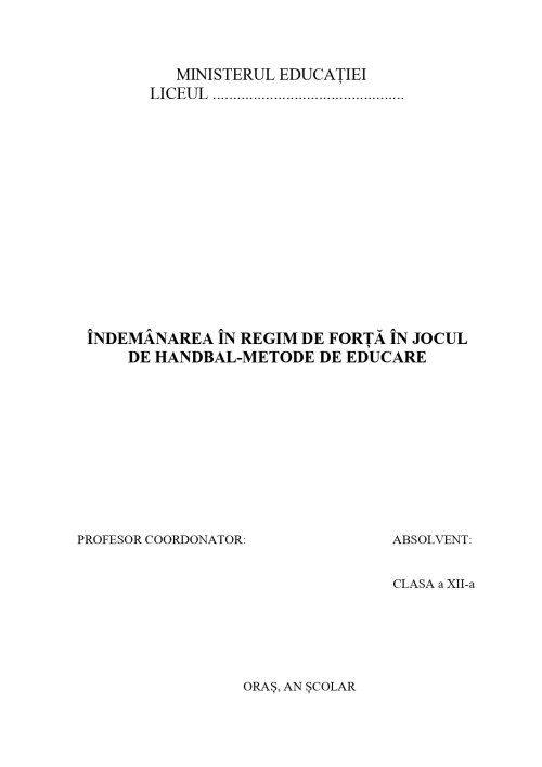 Alegerea temei mele pentru atestatul de final de liceu, "Îndemânarea în Regim de Forță în Jocul de Handbal - Metode de Educare", a fost una deliberată și profund motivată de pasiunea mea pentru acest sport dinamic și provocator. Încă de când am început să practic handbalul la nivel de liceu, am simțit că acesta nu este doar un simplu sport, ci o artă a coordonării, a strategiei și a disciplinei.
