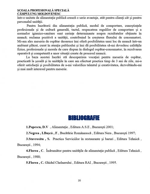 3.Stavrositu , S. Practica Serviciilor în restaurante şi baruri , Editura Tehnică , Bucureşti , 1994;
