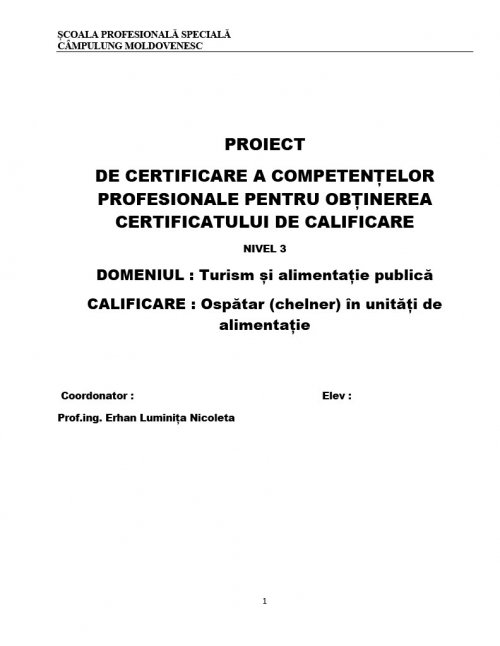 Capitolul I: Pregătirea sălii pentru primirea consumatorilor……….....pag.9