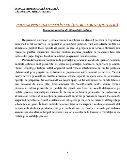 Igienă şi protecţia muncii în unităţile de alimentaţie publică…………. pag.5