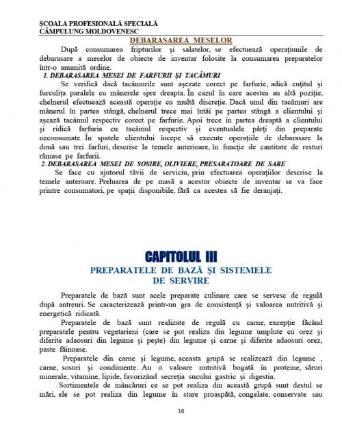 Capitolul III: Preparatele de bază şi sistemele de servire……………….pag.16