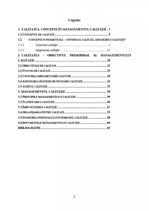 1.CALITATEA. CONCEPTE ÎN MANAGEMENTUL CALITĂŢII .......... pagina 3