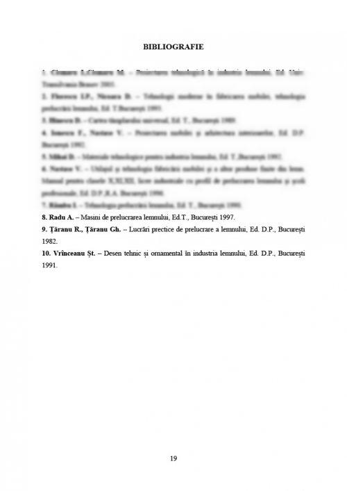 2.Florescu I.P., Nicoara D. – Tehnologii moderne în fabricarea mobilei, tehnologia prelucrării lemnului, Ed. T.București 1993.