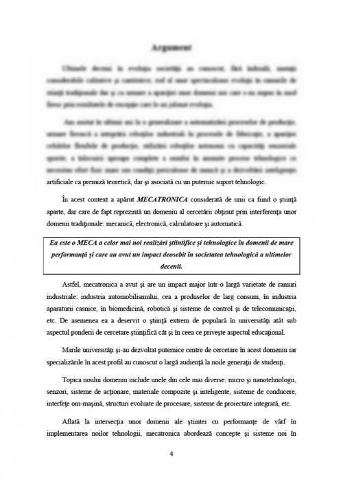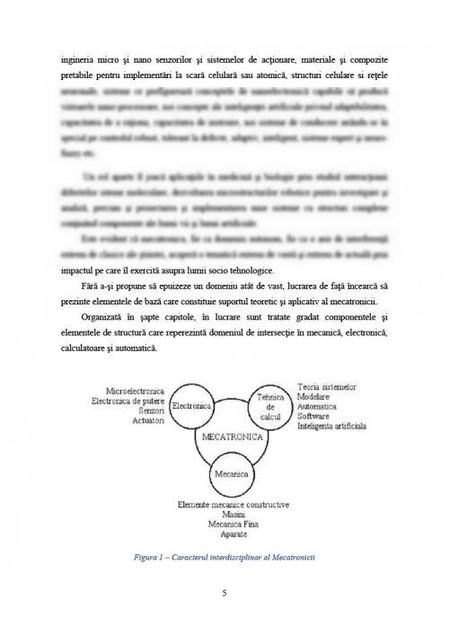 Fără a-şi propune să epuizeze un domeniu atât de vast, lucrarea de faţă încearcă să prezinte elementele de bază care constituie suportul teoretic şi aplicativ al mecatronicii.