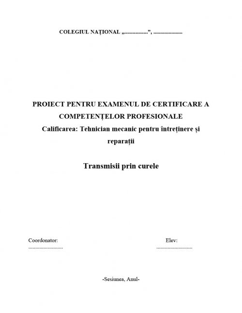 2. FORME CONSTRUCTIVE ALE TRANSMISIILOR PRIN CURELE .......... pagina 11