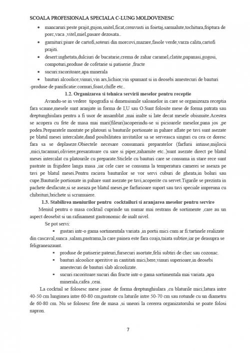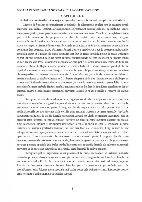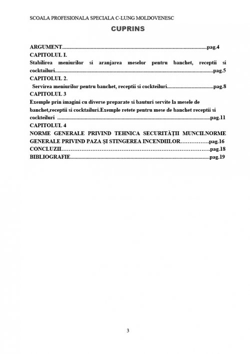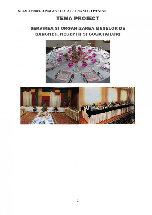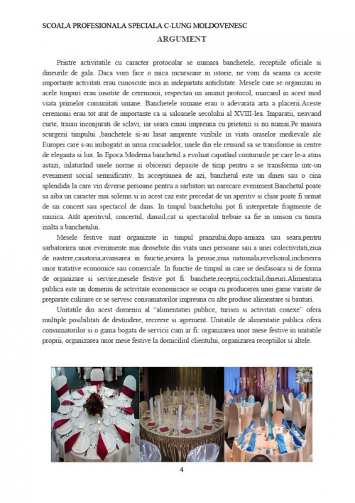 Stabilirea meniurilor si aranjarea meselor pentru banchet, receptii si cocktailuri....................................................................................................................pag.5