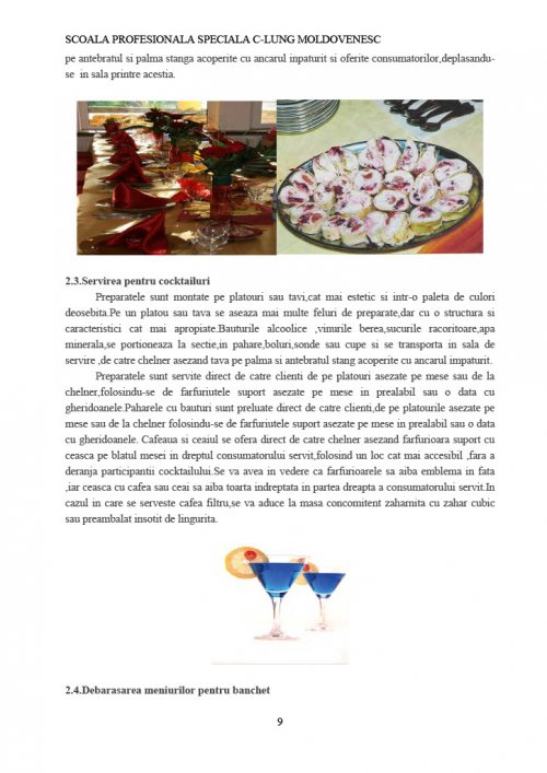Servirea meniurilor pentru banchet, receptii si cockteiluri..................................pag.8