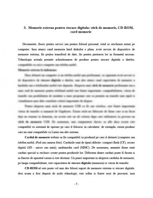 3.Memorie externa pentru stocare digitala: stick de memorie, CD-ROM, card memorie .......... pagina 5