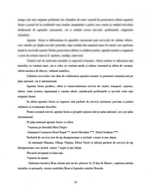 -capitolul II, agenţia de turism, verigă importantă în producerea şi comercializarea produselor turistice, face referire la agenţia “Sirius” prezentând totodată si ofertele acesteia