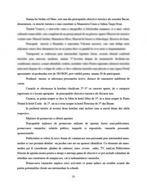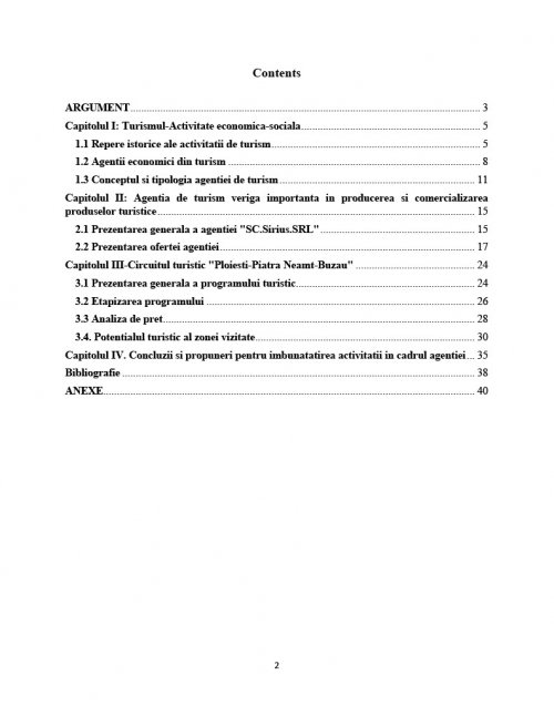 -capitolul III, produsul turistic, ne prezintă circuitul intern propus clienţilor de către agenţia “Sirius”: Ploiesti-Brasov-Sibiu-Tg.Mures-Piatra-Neamt-Bacau-Vrancea- Buzau-Ploiesti