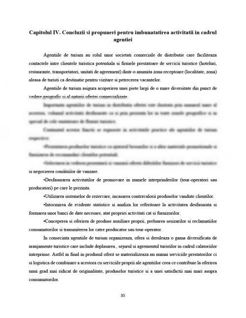 Capitolul IV. Concluzii si propuneri pentru imbunatatirea activitatii in cadrul agentiei .......... pagina 35