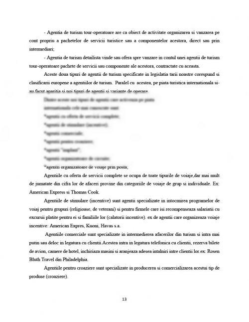 1.3 Conceptul si tipologia agentiei de turism .......... pagina 11