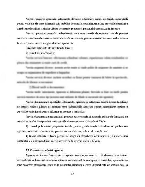 2.2 Prezentarea ofertei agentiei .......... pagina 17