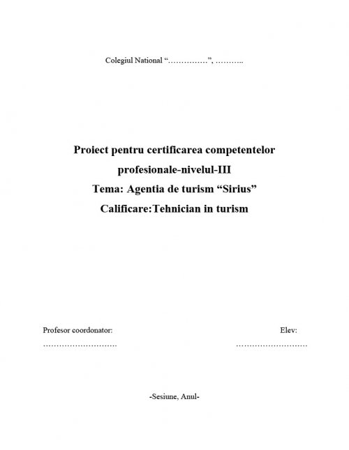 La întocmirea lucrării am folosit un bogat şi diversificat material bibliografic, dar şi cunoştinţele dobândite în stagiile de pregătire practică realizate la agenţiile de turism din oraşul nostru. Am urmărit întocmirea proiectului cu termeni de specialitate, în acord cu cerinţele tot mai exigente ale economiei pe piaţă şi concurenţei de pe piaţa turistică.