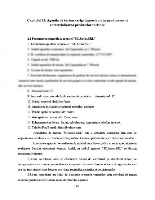 Capitolul II: Agentia de turism veriga importanta in producerea si comercializarea produselor turistice .......... pagina 15