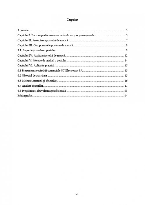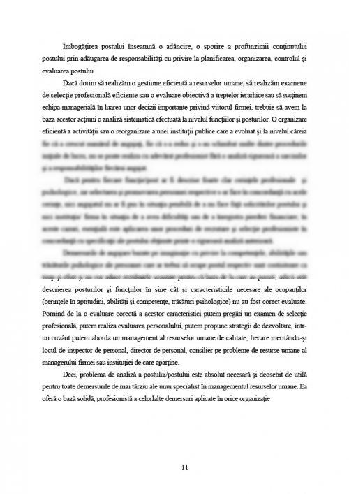 Capitolul IV. Analiza postului de muncă .......... pagina 12