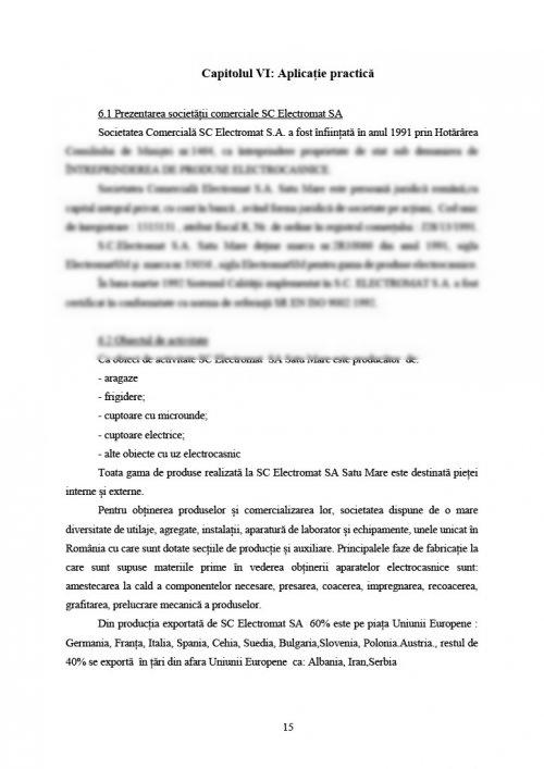 6.1 Prezentarea societății comerciale SC Electromat SA .......... pagina 15