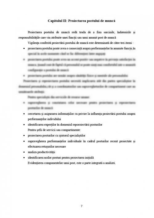 Capitolul II. Proiectarea postului de muncă .......... pagina 7