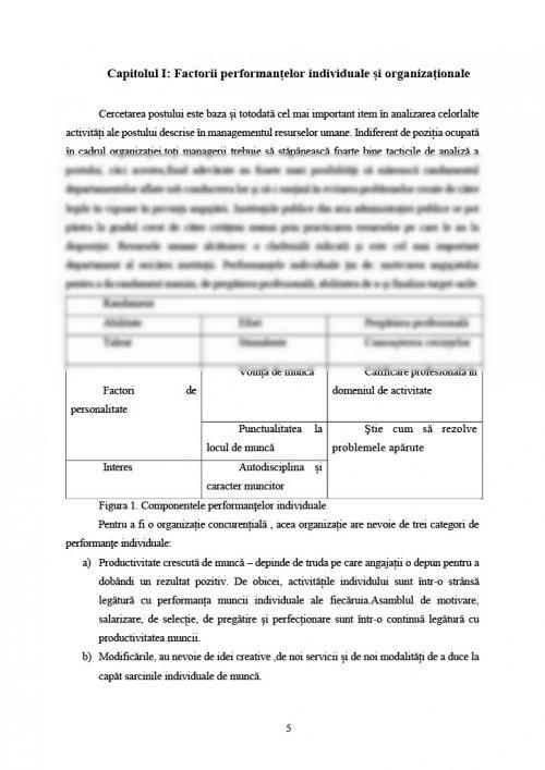 Capitolul I. Factorii performanțelor individuale și organizaţionale .......... pagina 5