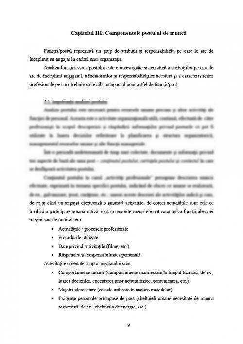 Capitolul III. Componentele postului de muncă .......... pagina 9